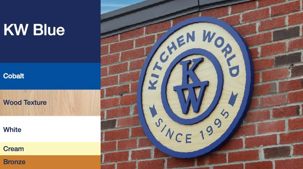 Since its inception, Kitchen World has been defined by blue, a color known for design blueprints but it also conveys reliability, loyalty, and wisdom. Blue reflects the artistic innovation and sophistication long associated with the color Cobalt. Pairing warm creams, bronze tones, and natural wood textures with KW Blue and Cobalt marries comfort, strength, and loyality.