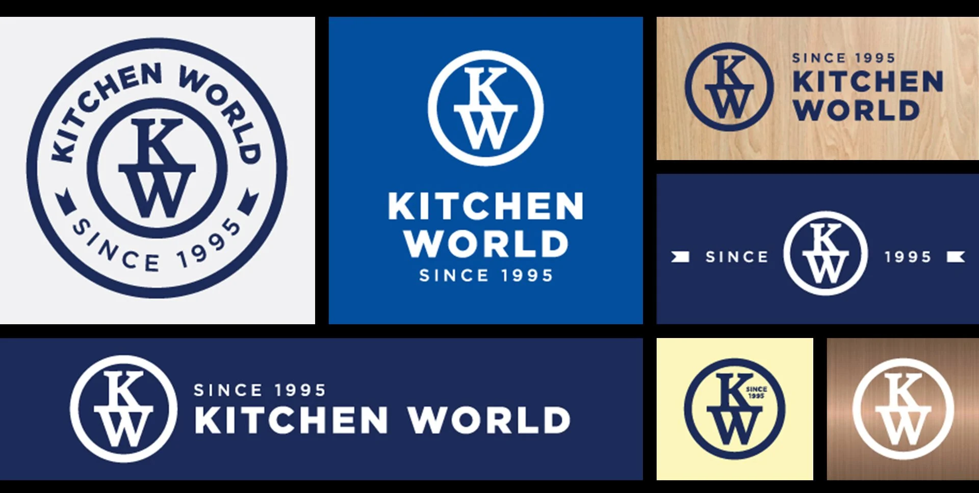 Our friends at Kitchen World came to us ready for a fresh look. Their logo, unchanged since 1995, was tricky to use because of its very wide shape. They were open to reimagining or redesigning entirely, as long as it centered on the name that carried equity: KW.